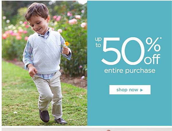 Gymboree 童裝5折,滿美金75元還美國境內免運費。