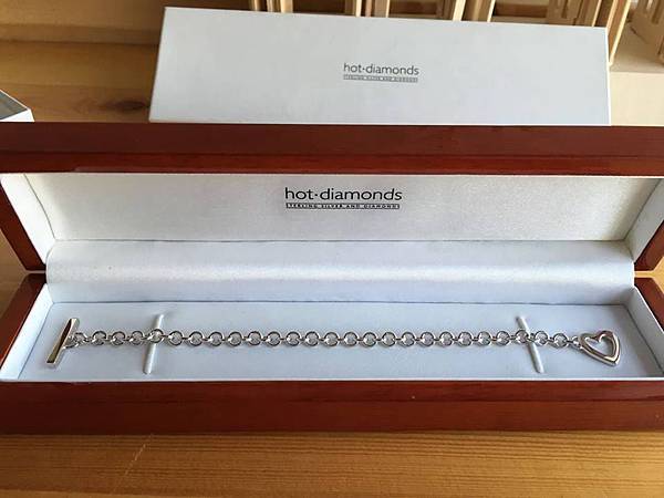 超值的英國銀飾品牌Hot Diamonds又來了,925純銀再電鍍一層白金,保證不氧化變色.這個加1顆小鑽的愛心手鍊,簡單大方又百搭,重點是價格非常優惠,NTD$ 2880.含原品牌的高級木盒,外包裝紙盒及拭銀布.